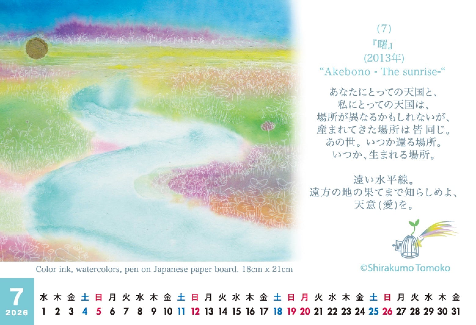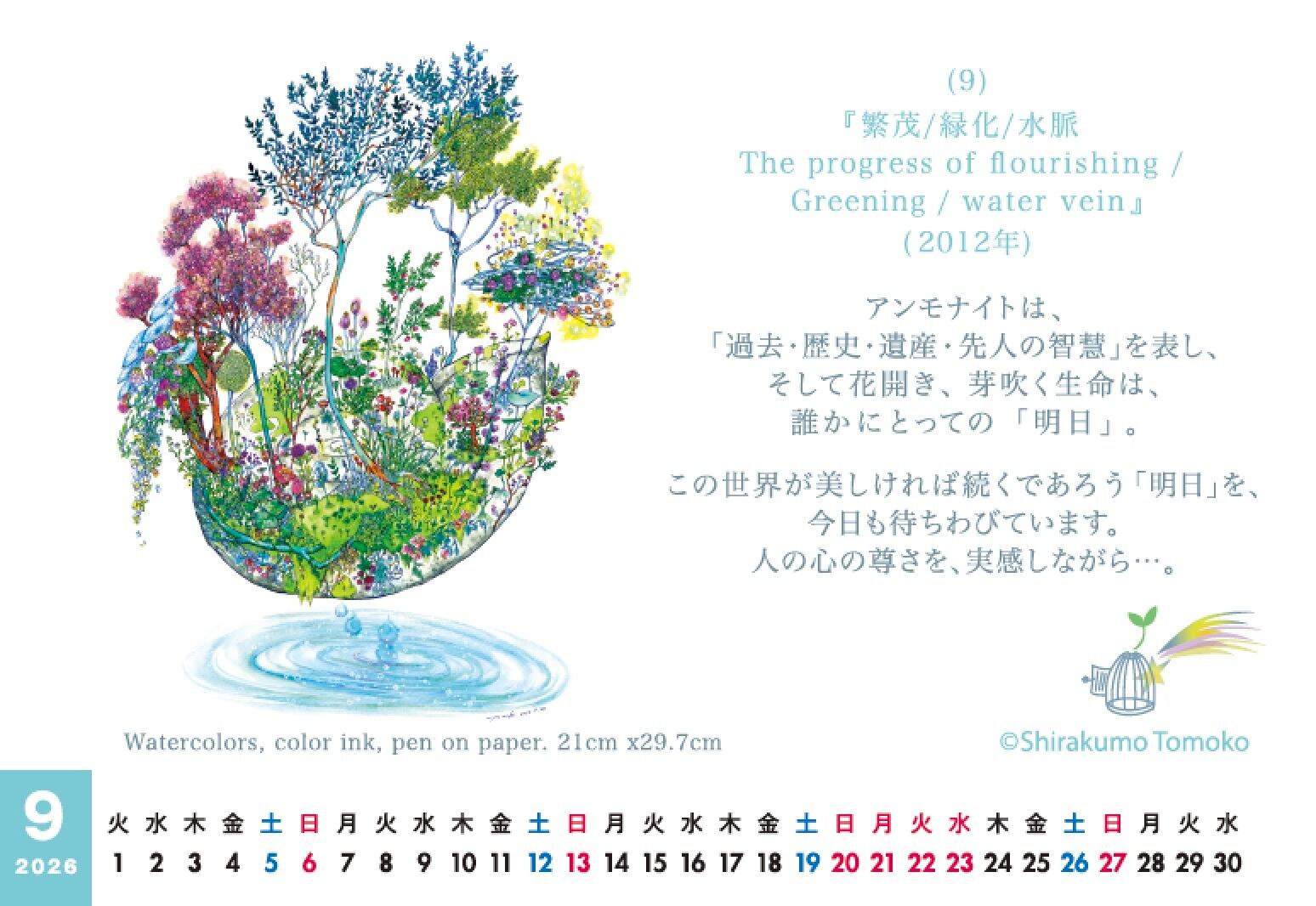 2026年【アトリエ白雲】卓上カレンダー(postcardサイズ)『未来の中の、ある1日 A beautiful day in the future』 | 表具師・八上松竹堂 別館 「アトリエ白雲友子」