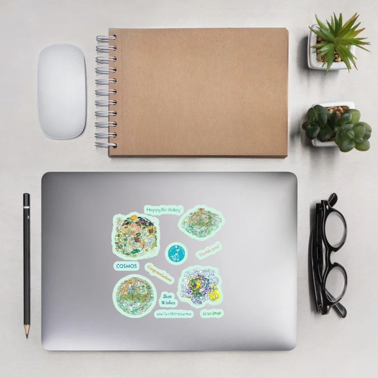 【アトリエ白雲】15 cm四方 Cut Stickers “Earth/ Cosmos/ Heaven/ rainbow 『コスモス-地上の楽園-天上の風景-虹-』シール