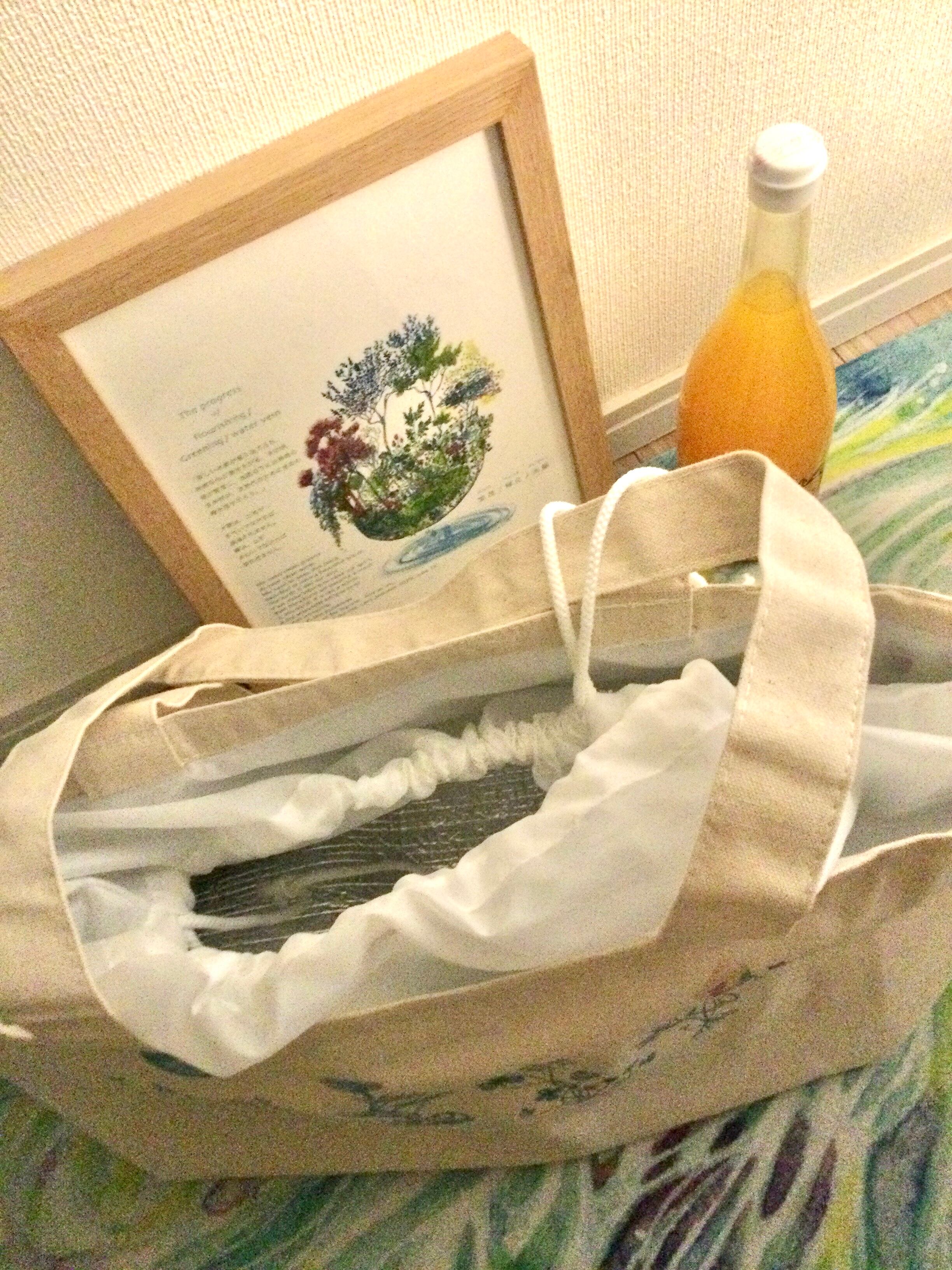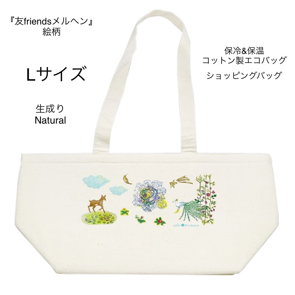 Lサイズ大型【アトリエ白雲】友friendsメルヘン絵柄「保冷・保温ショッピングバッグ」巾着むすび