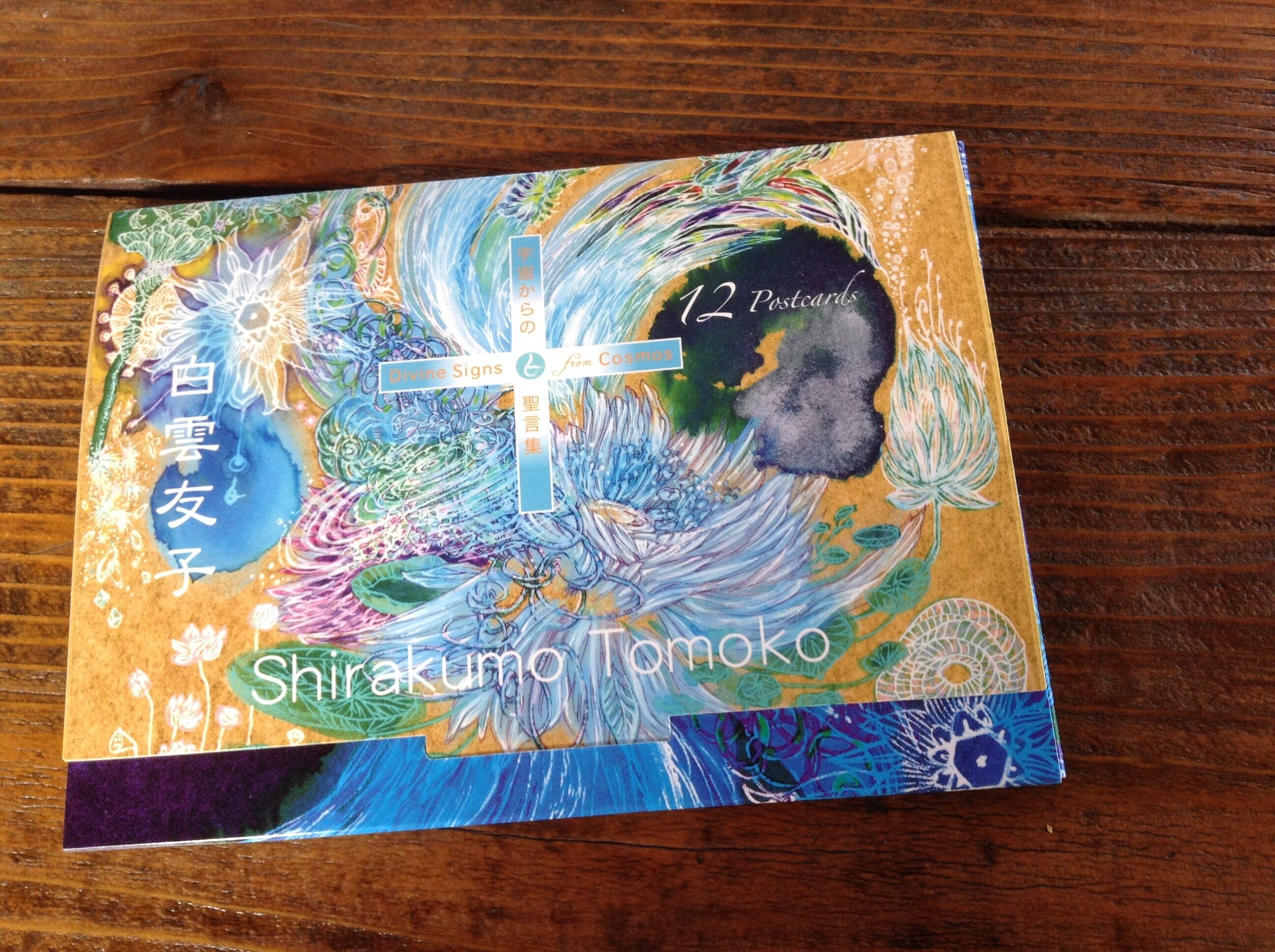 *Shirakumo Tomoko's postcard collection. Includes 12 pictures (each one) of the art book "Divine signs from Cosmos" (published by Hikaruland, written by Tanaka Shinsui and Shirakumo Tomoko. Includes both Japanese and English titles. The title of the painting is printed on the reversed side.