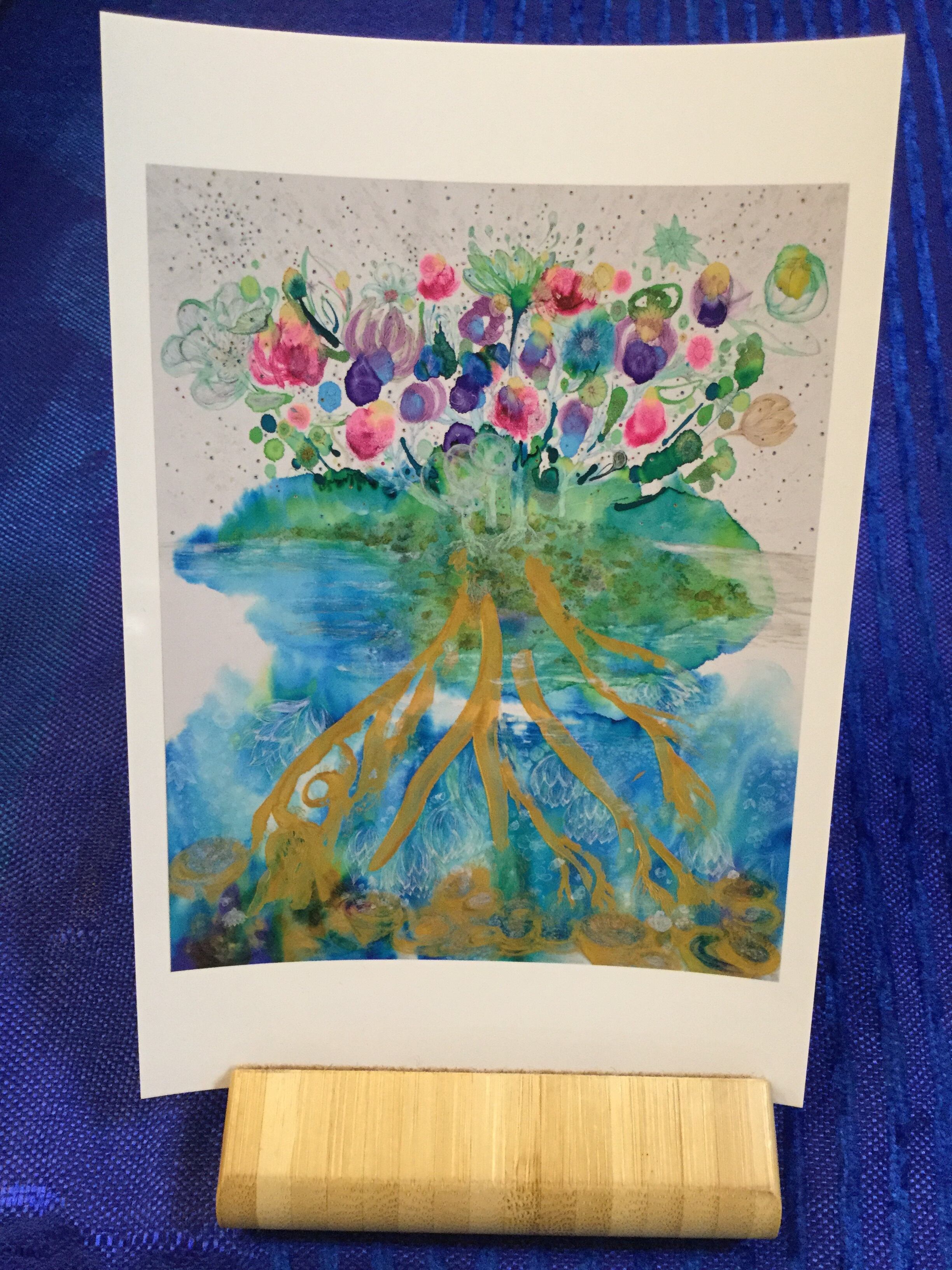 私たちは、自分たちにとって美しいものとは何か?を探す旅をしているのかもしれません。この人生をかけて。美しい種子を、未来へ蒔いて、花を咲かせてまいりましょう。そのような願いをこめて、描かれた絵です。