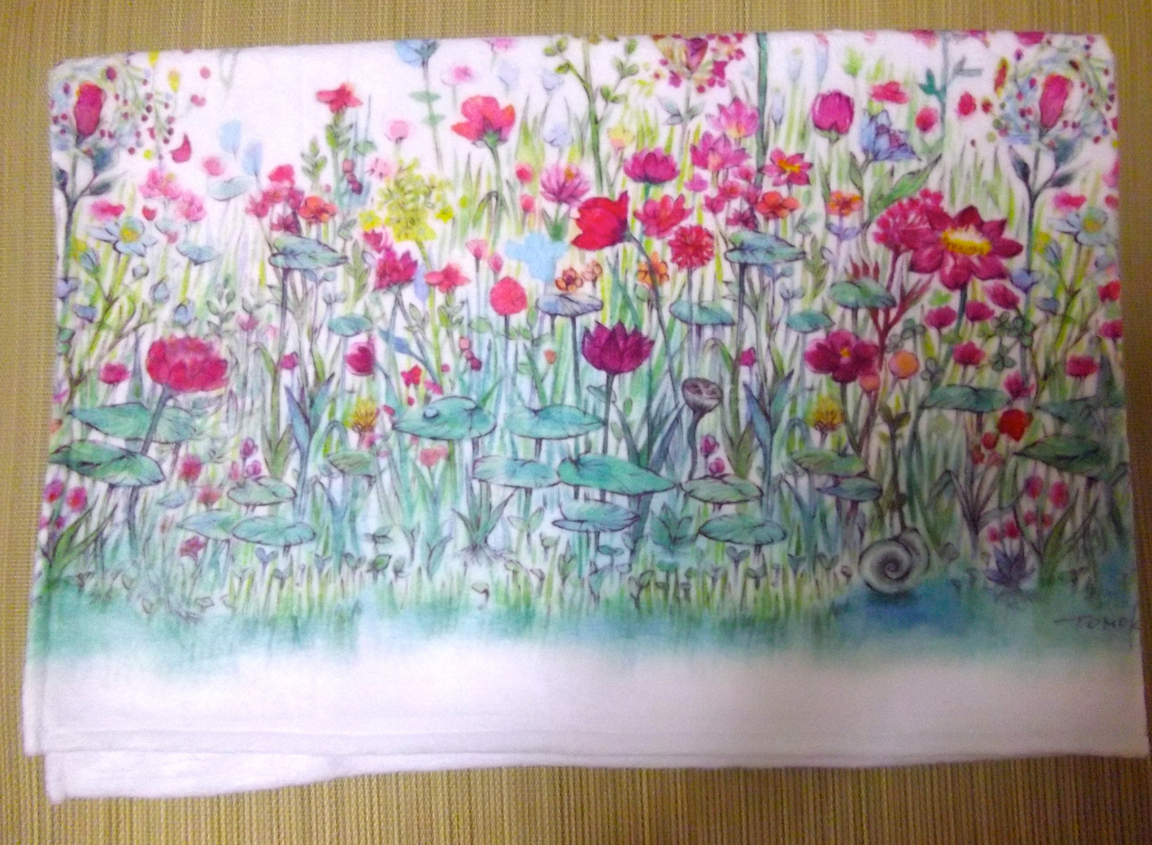 *「結実の花庭」の絵を一面に敷きつめた花畑柄は、静かで穏やかな眠りへといざないます。
