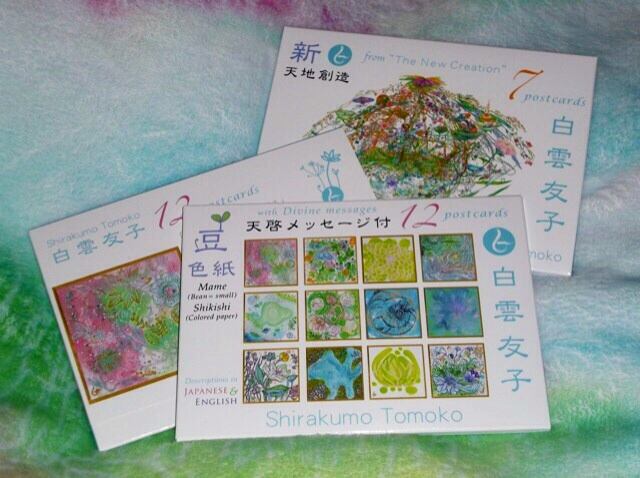 *横浜、ギャルリー・パリで開催して頂いた白雲友子の原画展「豆色紙による天啓メッセージの表現」で完売した絵柄を全て収録した貴重なポストカード・セット。絵柄12種類(各1枚ずつ)が入っています。