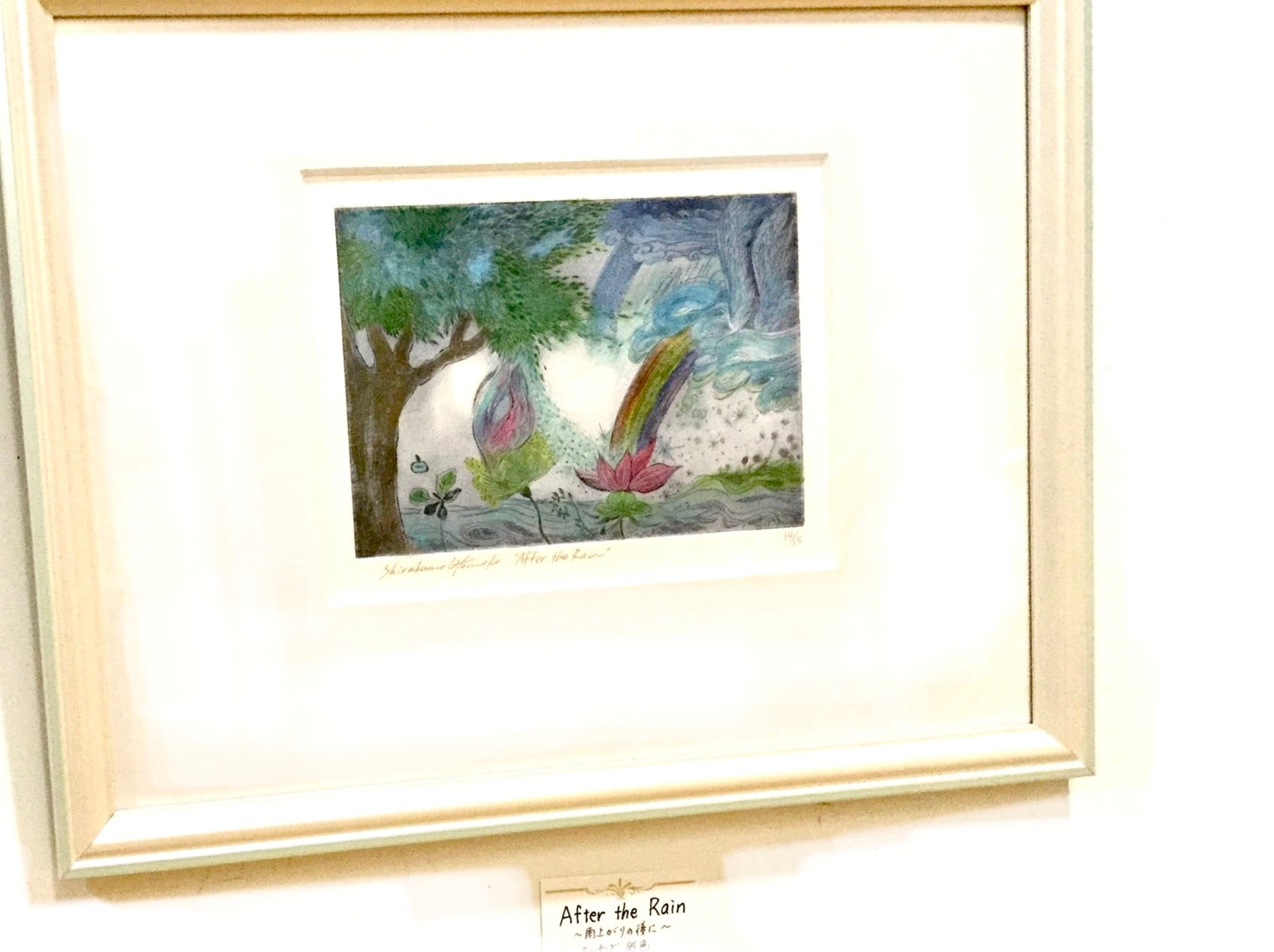 白雲友子ミラノ制作『after the rain 雨上がりの後に(虹が出る)』エッチング銅版画(彩色)