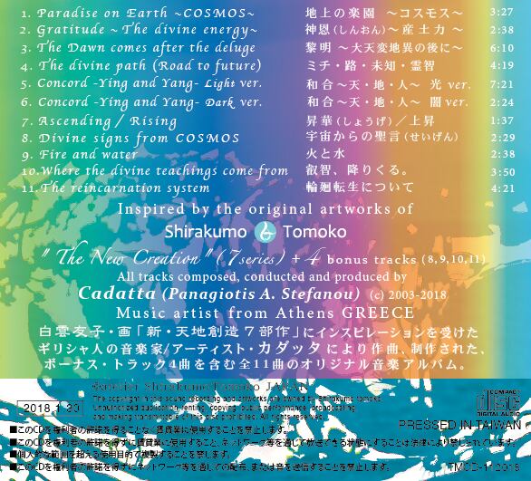白雲友子・画「新・天地創造7部作」をリスペクトしている、ギリシャ人のミュージックアーティスト《カダッタ Cadatta 》が、白雲友子の絵たちからインスピレーションを受け、全11曲のオリジナル音楽を作曲しました。